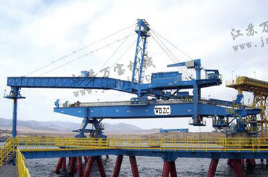 直線式擺動裝船機是一種整機不沿碼頭岸線移動的固定式裝船機。它與弧線式裝船機的主要區(qū)別是,裝船機的前端棧橋的軌道呈直線形,也就是裝船機的橋架沿直線軌道擺動。這種裝船機具有其獨特的優(yōu)點:采用大跨距的回轉(zhuǎn)橋架,由于前端有支承軌道,所以避免了巨大的懸臂傾覆作用,有利于加大回轉(zhuǎn)半徑,在較小的伸縮變幅的情況下,完成長大艙口的覆蓋面積。這樣就可以采用單機頭,充分發(fā)揮皮帶機高效率的特點;水工建筑也只受豎向載荷,使水工建筑的投資減少。但這種裝船機的臂架支點的結(jié)構(gòu)很復雜,不僅要能旋轉(zhuǎn),而且要能伸縮,并要求這些動作同步進行,所以直線式裝船機的技術(shù)要求高。